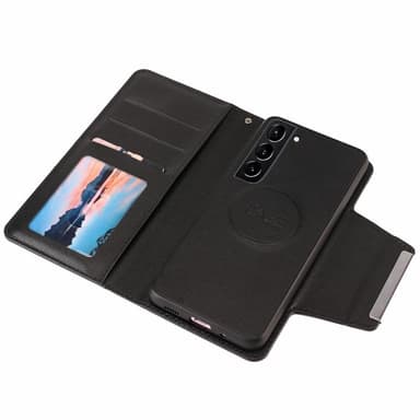 Ett plånboksfodral i PU-läder med magnetiskt avtagbart innerskal.