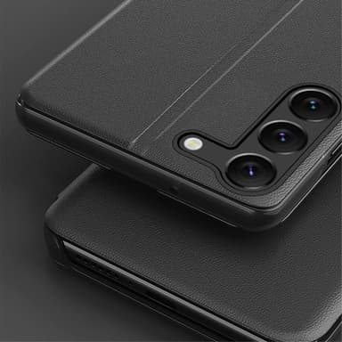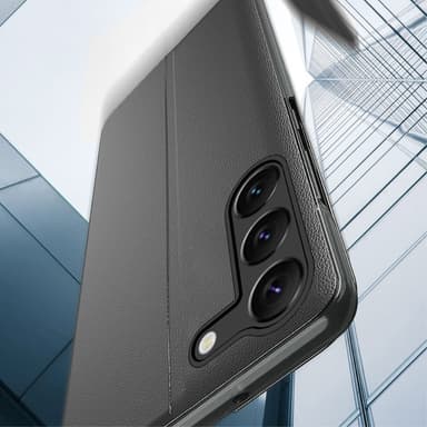 Upplev den perfekta kombinationen av skydd och elegans med Clear View Window. Det lyxiga PU-lädret och robusta PC-materialet ger ett hållbart och stilfullt fodral. Den innovativa nano-dubbelhäftande tekniken säkerställer att fodralet sitter perfekt, medan den inbyggda ståfunktionen ger optimal komfort för handsfree-visning. De precisa utskärningarna ger enkel åtkomst till alla funktioner.