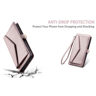 Upptäck den perfekta kombinationen av stil och funktionalitet med vårt PU-läderfodral. Den eleganta designen och slitstarka PU-lädret ger ett sofistikerat utseende, medan de praktiska funktionerna gör din vardag enklare. Fodralet skyddar din telefon mot repor och stötar och har inbyggda korthållare och en sedelficka så att du kan ha allt det viktigaste med dig på språng. Det fällbara stativet gör det enkelt att titta på film eller videos, och den medföljande handledsremmen säkerställer att du alltid har ett fast grepp om din telefon.