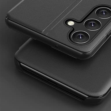 Upplev den perfekta kombinationen av skydd och elegans med Clear View Window. Det lyxiga PU-lädret och robusta PC-materialet ger ett hållbart och stilfullt fodral. Den innovativa nano-dubbelhäftande tekniken säkerställer att fodralet sitter perfekt, medan den inbyggda ståfunktionen ger optimal komfort för handsfree-visning. De precisa utskärningarna ger enkel åtkomst till alla funktioner.