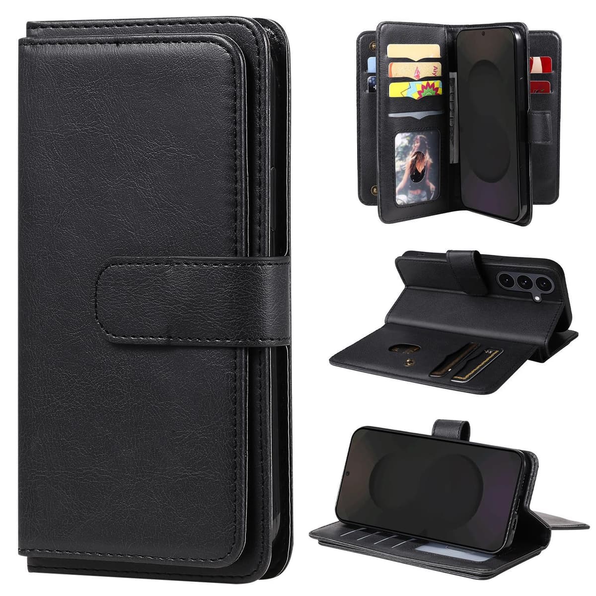 KT 10-FACK ger optimalt skydd och funktionalitet. Fodralet är designat med fokus på praktisk korthållning och skydd. Med 10 kortplatser och en separat sedelficka kan du enkelt organisera dina viktigaste kort och kontanter. Den justerbara stativfunktionen förenklar både arbete och fritid. Fodralet är tillverkat av slitstarkt PU-läder och ett tunt TPU-innerskal, som ger god stötdämpning. Den dubbelsidiga magnetiska stängningen säkerställer enkel och säker förvaring.