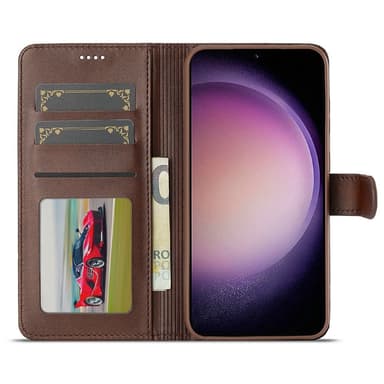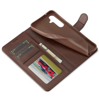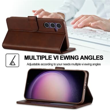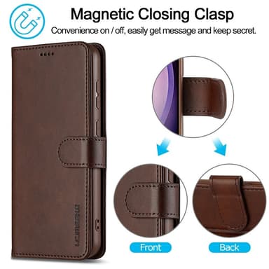Detta eleganta fodral är tillverkat av PU-läder med kalvliknande textur och TPU-material, vilket ger en mjuk känsla och ett stilrent utseende. Det erbjuder 360-graders skydd för din telefon och kombinerar funktionalitet med design. Med två kortfack, ett fotofack och ett kontantfack kan du lämna plånboken hemma. Det vikbara stället gör det enkelt att titta på innehåll handsfree, medan det starka magnetlåset håller allt säkert på plats. Ett reserverat hål för högtalaren gör att du kan prata i telefon även med fodralet stängt.