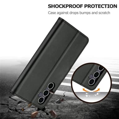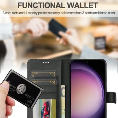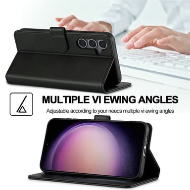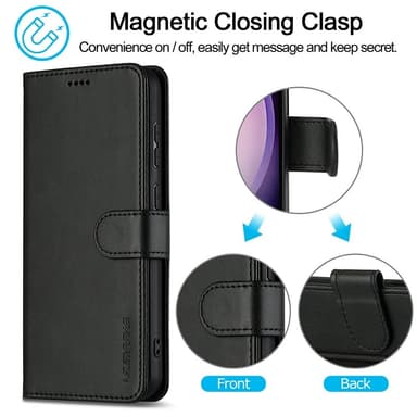 Detta eleganta fodral är tillverkat av PU-läder med kalvliknande textur och TPU-material, vilket ger en mjuk känsla och ett stilrent utseende. Det erbjuder 360-graders skydd för din telefon och kombinerar funktionalitet med design. Med två kortfack, ett fotofack och ett kontantfack kan du lämna plånboken hemma. Det vikbara stället gör det enkelt att titta på innehåll handsfree, medan det starka magnetlåset håller allt säkert på plats. Ett reserverat hål för högtalaren gör att du kan prata i telefon även med fodralet stängt.