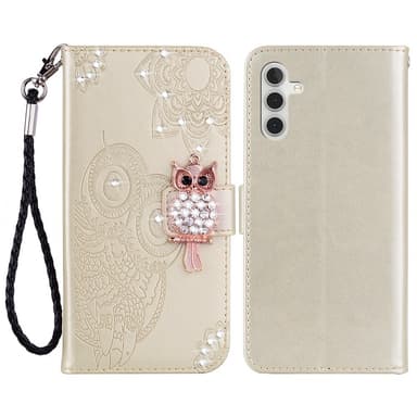 Owl Bling är ett elegant och funktionellt mobilfodral tillverkat av slitstarkt PU-läder med ett flexibelt TPU-inre skal. Den distinkta ugglepräglingen kombinerat med gnistrande strasstenar ger ett stilfullt och iögonfallande utseende. Med två kortfack och ett kontantfack kan du lämna plånboken hemma. Stödfunktionen gör det enkelt att titta på film eller läsa utan att hålla i telefonen. Flip-fodralet skyddar effektivt mot repor, märken och vardagligt slitage. Den medföljande handremmen gör det smidigt att bära med sig.