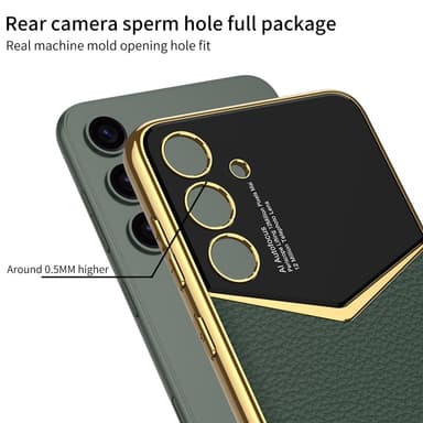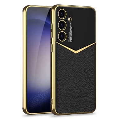 Upplev den lyxiga känslan av detta PU-läderfodral med guldkant. Designat för att skydda din telefon optimalt, kombinerar det hållbarhet med ett elegant, modernt utseende. Den mjuka TPU-ramen ger ett bekvämt och naturligt grepp, samtidigt som det skyddar mot stötar och fall. Fodralet stödjer trådlös laddning.