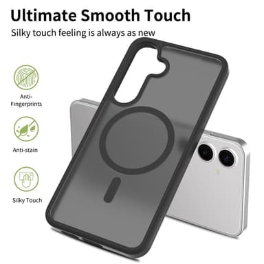 Upplev den silkeslena känslan av Skin-touch Hybrid. Den flexibla TPU-ramen skyddar din telefon mot stötar och repor, medan den slimmade profilen bevarar telefonens eleganta design. Med inbyggda magneter för MagSafe-kompatibilitet och precisa utskärningar för enkel åtkomst till alla funktioner, är detta skal den perfekta kombinationen av stil och funktionalitet.