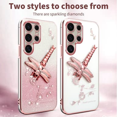 Ge din telefon en touch av elegans med detta KADEM Dragonfly Glitter skal. Det glittriga skalet med inbyggt stativ ger både stil och funktion. Njut av handsfree-visning med det praktiska stativet samtidigt som den vackra designen med evighetsblomma och strass lyfter din telefons utseende.