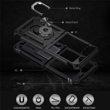 Upplev ultimat skydd och funktionalitet med Armor Metallring. Den inbyggda metallringen ger dig en bekväm handsfree-upplevelse, och den robusta designen skyddar din enhet mot stötar och fall. Med magnetisk bilmontering kan du enkelt och säkert använda din enhet medan du kör.