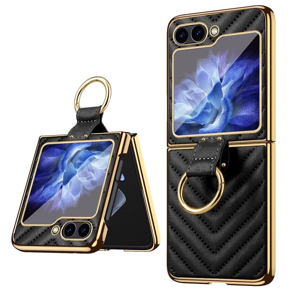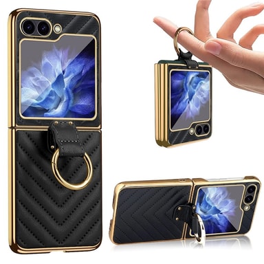 Detta eleganta mobilskal är tillverkat av hård PC med ett yttre lager av PU-läder, vilket ger en slitstark och hållbar konstruktion. Den sofistikerade V-formade designen ger inte bara ett stilrent utseende utan förbättrar även greppet, vilket minskar risken för att tappa enheten. Skalet erbjuder ett robust skydd mot repor, stötar och fall, samtidigt som de precisa utskärningarna ger enkel åtkomst till alla knappar, portar och kameran. Den integrerade ringhållaren fungerar även som ett stativ, vilket gör det bekvämt att hålla i telefonen eller titta på innehåll handsfree.