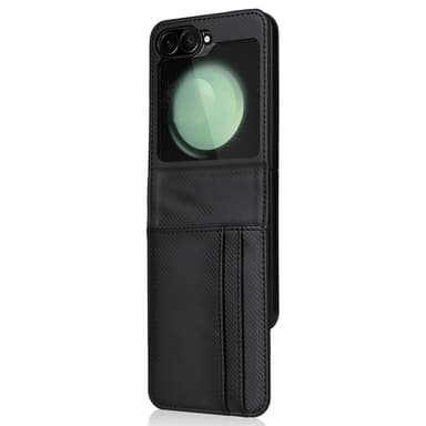 Detta mobilskal är tillverkat av PU-läder med kolfibertextur och PC-material, vilket ger en behaglig känsla i handen. Med inbyggda kortfack kan du enkelt bära med dig dina viktigaste kort. Den exakta passformen ger smidig åtkomst till alla portar och gränssnitt. Skalet omsluter telefonen helt och skyddar mot vardagliga stötar, kollisioner och skador. Den integrerade designen gör det enkelt att fälla ihop tillsammans med telefonen för bekväm användning.