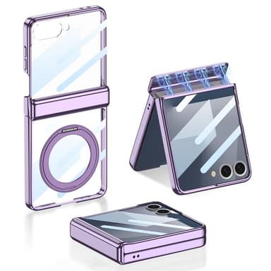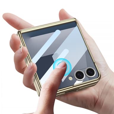 GGK Härdat Glas Hybrid är ett avancerat skyddsskal som kombinerar ett hårt PC-material med härdat glas för överlägsen hållbarhet, reptålighet och stötdämpning. Det inbyggda metallstativet kan roteras för att möjliggöra handsfree-visning i både stående och liggande läge – perfekt för videosamtal eller mediekonsumtion. Den magnetiska gångjärnsdesignen skyddar vikområdet och förhindrar deformation vid långvarig användning. Skalet är specialanpassat med exakta utskärningar för enkel åtkomst till alla knappar, portar och funktioner. Den blanka glasytan ger ett stilrent och exklusivt intryck samtidigt som den erbjuder praktiskt skydd i vardagen.