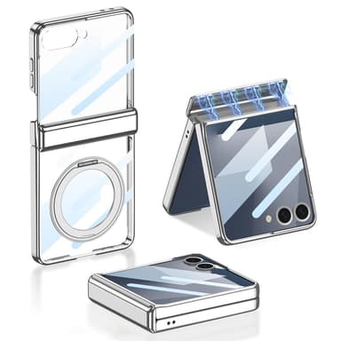 GGK Härdat Glas Hybrid är ett avancerat skyddsskal som kombinerar ett hårt PC-material med härdat glas för överlägsen hållbarhet, reptålighet och stötdämpning. Det inbyggda metallstativet kan roteras för att möjliggöra handsfree-visning i både stående och liggande läge – perfekt för videosamtal eller mediekonsumtion. Den magnetiska gångjärnsdesignen skyddar vikområdet och förhindrar deformation vid långvarig användning. Skalet är specialanpassat med exakta utskärningar för enkel åtkomst till alla knappar, portar och funktioner. Den blanka glasytan ger ett stilrent och exklusivt intryck samtidigt som den erbjuder praktiskt skydd i vardagen.