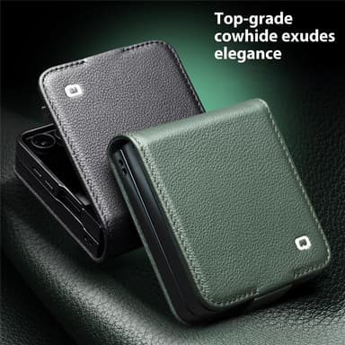 QIALINO Äkta Läder Kortfack är tillverkat av högkvalitativt äkta läder och PC-material, vilket ger ett smidigt och flexibelt grepp med en lyxig glans. Den magnetiska stängningen håller din telefon säker samtidigt som den är lätt att öppna, utan att påverka funktionaliteten. Det inbyggda kortfacket gör det enkelt att förvara kreditkort eller ID, vilket kombinerar stil med praktisk användning. Det vikbara läderfodralet ger ett heltäckande skydd utan att störa telefonens funktioner. Exakta utskärningar ger enkel åtkomst till alla portar, knappar och kameror utan att ta bort fodralet.