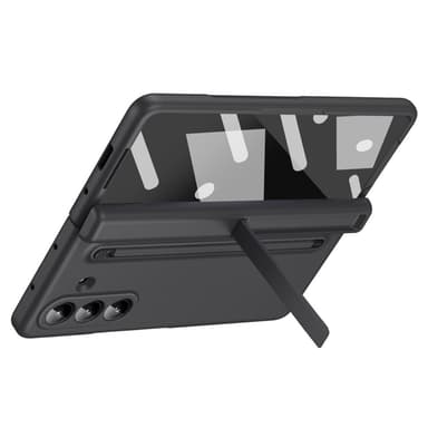 Detta mobilskal är tillverkat av gummibelagt PC-material som ger enastående hållbarhet med stötsäkra och slitstarka egenskaper. De upphöjda kanterna runt skärmen och kameran skyddar effektivt mot repor och skador vid fall. Ett inbyggt, robust ställ på baksidan möjliggör handsfree-visning, perfekt för videor, surfning eller videosamtal. Skalet erbjuder heltäckande skydd mot vardagligt slitage och har ett inbyggt skärmskydd i härdat glas som skyddar mot repor och smuts. En dedikerad plats för styluspenna gör det enkelt att förvara och använda den medföljande pennan. Designen är användarvänlig med exakta utskärningar och responsiva knappar för smidig åtkomst till alla funktioner.