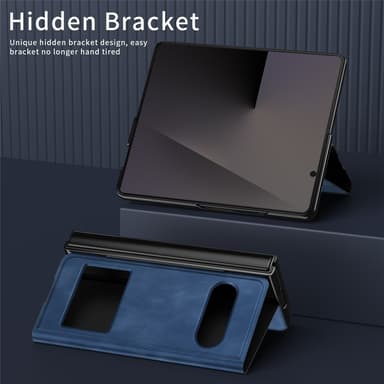 Elegant fodral tillverkat av nappaliknande PU-läder med ett inre skal av PC som ger en stilren, slitstark och mjuk känsla. Den smarta frontluckan har ett genomskinligt fönster som gör det enkelt att se tid, samtal och aviseringar utan att öppna fodralet. Det magnetiska locket håller fodralet säkert stängt och förhindrar oavsiktliga öppningar. Med det inbyggda stället kan du bekvämt titta på videor, läsa eller ha videosamtal utan att hålla i enheten. Fodralet skyddar effektivt mot repor, fingeravtryck och vardagligt slitage, samtidigt som alla portar och knappar är lättåtkomliga.