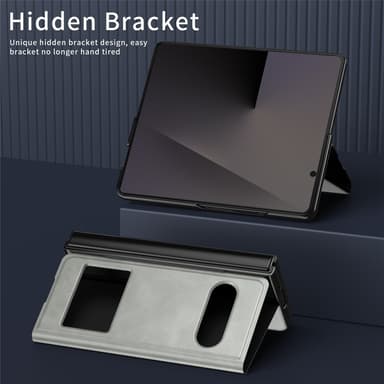 Elegant fodral tillverkat av nappaliknande PU-läder med ett inre skal av PC som ger en stilren, slitstark och mjuk känsla. Den smarta frontluckan har ett genomskinligt fönster som gör det enkelt att se tid, samtal och aviseringar utan att öppna fodralet. Det magnetiska locket håller fodralet säkert stängt och förhindrar oavsiktliga öppningar. Med det inbyggda stället kan du bekvämt titta på videor, läsa eller ha videosamtal utan att hålla i enheten. Fodralet skyddar effektivt mot repor, fingeravtryck och vardagligt slitage, samtidigt som alla portar och knappar är lättåtkomliga.
