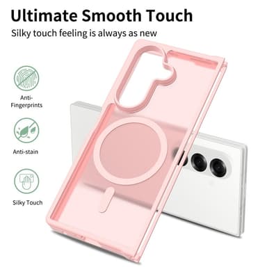 Upplev den silkeslena känslan av Skin-touch Hybrid. Den flexibla TPU-ramen skyddar din telefon mot stötar och repor, medan den slimmade profilen bevarar telefonens eleganta design. Med inbyggda magneter för MagSafe-kompatibilitet och precisa utskärningar för enkel åtkomst till alla funktioner, är detta skal den perfekta kombinationen av stil och funktionalitet.