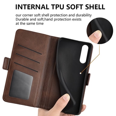 Plånboksfodral i premium PU-läder med totalt 4 stycken fack.