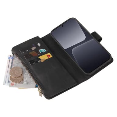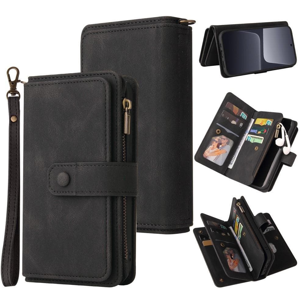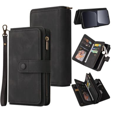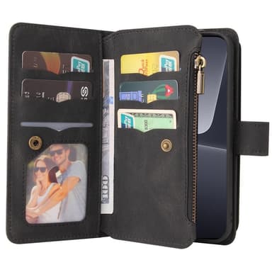 Ett plånboksfodral med mocka-liknande PU-läder med totalt 17 fack.