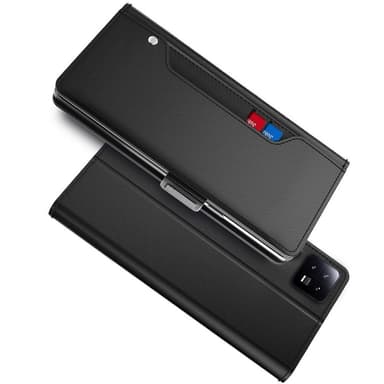 Plånboksfodral med utfällbar korthållare för 2 kort samt mindre spegel på insidan.