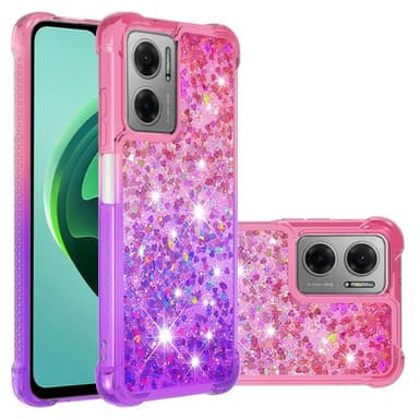 Ett TPU-skal med flyttande vätska med glitter och hjärtan som skyddar bra mot stötar och tappskador.