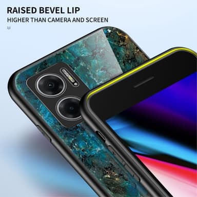 Ett slimmat TPU-skal med stilrent tryck och baksida i härdat glas för maximal känsla.