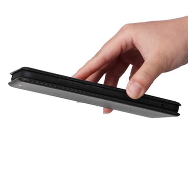 Plånboksfodral med kolfiber utseende och extra mjukt tyg på insidan.