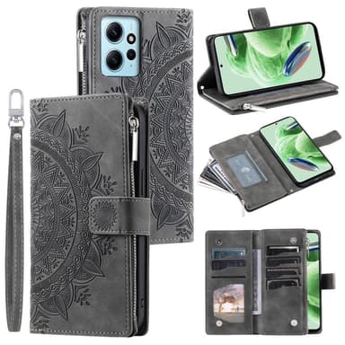 SKALO Xiaomi Redmi Note 12 4G Big Wallet Mandala Plånboksfodral - Grå