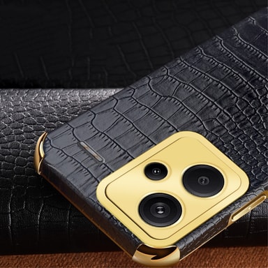 Krokodil-mönstrat PU-läder skal med guldiga detaljer.