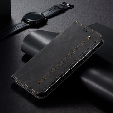 Upplev den perfekta kombinationen av stil och funktion med detta retro jeans-inspirerade skal. Tillverkat i högkvalitativt PU-läder och mjuk TPU, vilket ger en bekväm känsla. Den smarta designen med kortplatser och sidoficka gör det enkelt att ha ID, kreditkort och kontanter nära till hands. Den inbyggda stativfunktionen är perfekt för videosamtal och filmtittande, medan den magnetiska stängningen skyddar din skärm. Skalet skyddar din telefon optimalt mot stötar och repor.