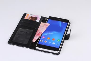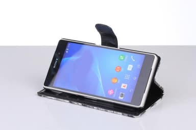 Det är ett så kallat stand-fodral, vilket betyder att du kan öppna upp det och ha din mobil stående, perfekt när man ska se på film, youtube eller liknande och vill slippa sitta och hålla i mobilen.