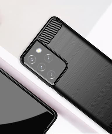Ett stöttåligt Armor Carbon skal i TPU till Samsung Galaxy S21 Ultra med snyggt kolfiber utseende!