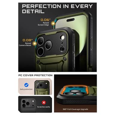 Supcase Unicorn Beetle Pro mobilskal är konstruerad för att möta de högsta standarderna och ger din mobiltelefon det bästa skyddet. Med en stötabsorberande baksida av polykarbonat och med kanter av TPU och en framsida av polykarbonat så erbjuder detta mobilskal ett skydd av militärklass mot repor, stötar och fall. Supcase har vunnit CNET:s första pris genom olika tester med att släppa skalet från olika höjder utan att gå sönder. Supcase har även erhållit det amerikanska militärcertifikatet MIL-STD 810G-516.6. Mobilskalet har ett integrerat ställ som kan fällas ut vid behov. Det medföljer även en praktisk bältes hållare som gör att du kan fästa skalet i livremmen.