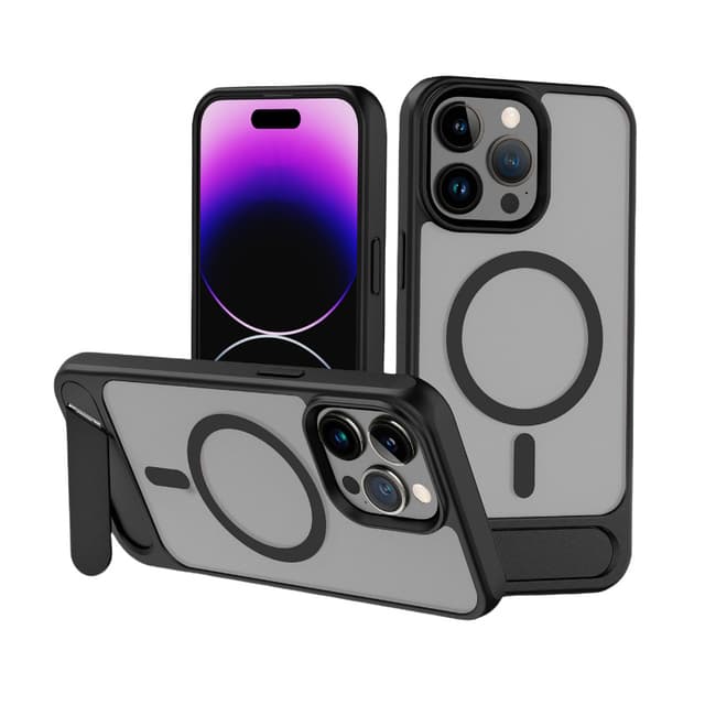 Bekvämt magnetiskt stativ: Njut av handsfree-visning med det inbyggda, osynliga, fyrkantiga magnetiska stativet. Den starka magneten ser till att din telefon sitter säkert på plats medan du tittar på videor eller ringer videosamtal.