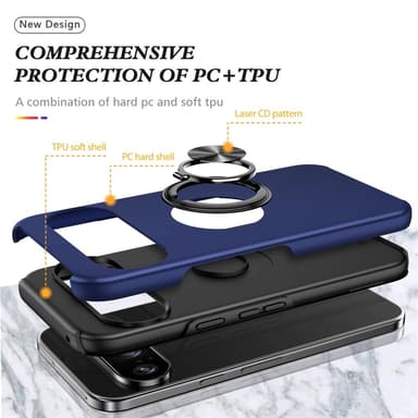 Hybridtelefonfodral heltäckande med ringformad kickstandsdesign för Google Pixel 10 Pro / Pixel 10 Skal - MörkBlå