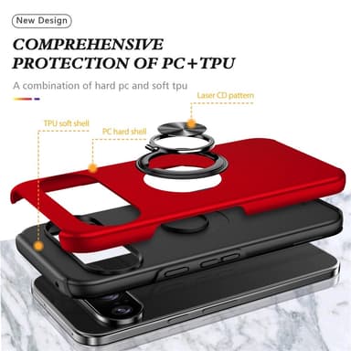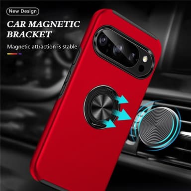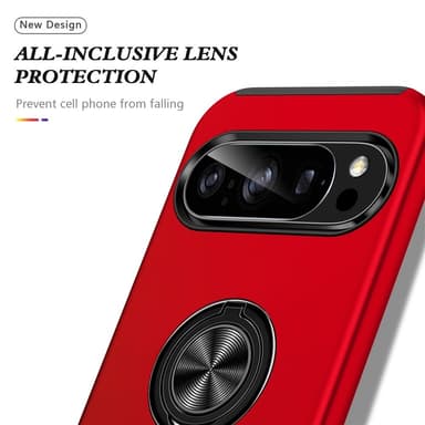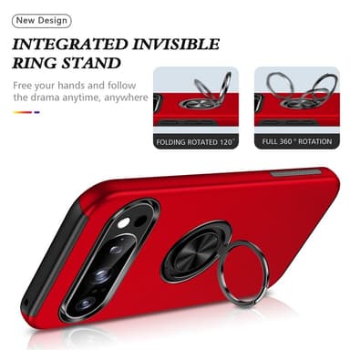 Hybridtelefonfodral heltäckande med ringformad kickstandsdesign för Google Pixel 10 Pro / Pixel 10 Skal - Röd