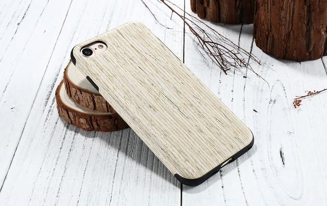 Tunt skal i mjuk TPU med ett överdrag av väldigt verklighetstrogen träimitation, snyggt och trendigt samt ger ett bra skydd till din iPhone 7 Plus/ iPhone 8 Plus.Träimitationen består av gummerat laminat som känns riktigt bra i handen och ger ett b