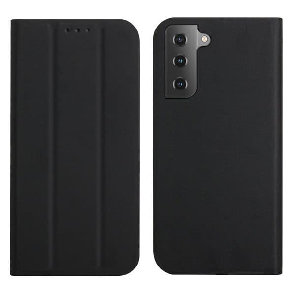 Praktiskt fodral för Samsung Galaxy S21 5G Med det här fodralet kan du låta händerna vila när du läser något eller ser på en video då det finns ett ställ för att sätta mobilen horisontellt på bordet. Fodralet skyddar alla sidor av mobilen från stötar, repor och damm. Det magnetiska fästet gör det enkelt att fälla upp fodralet. - Kompatibel med: Samsung Galaxy S21 5G - Färg: Svart