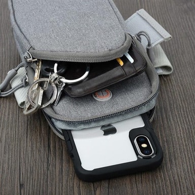 Universal Mobilväska / fodral för armen Har du inte lust att ha med dig en väska ut på turen, eller inte heller ha alla dina viktiga saker i fickorna. Då är den här armväskan perfekt! Smart, smidig, snygg och säker liten väska som rymmer både din plånbok, mobil, nycklar eller andra småsaker. . Passar mobiler med tum mellan 5,5-6"""" - Storlek 17x11x3.5 cm