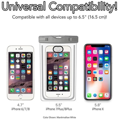 Vattentät till 10 meter: Tål att vara under vatten i upp till en timme på ett djup av 10 meter. Fodralet av transparent TPU material har en lås- och tätningsfunktion som ser till att inget vatten kommer in i mobilpåsen. Med ett vattentätt mobilfodral behöver du inte heller vara orolig för av stöld av din mobil på stranden när du ska i och bada, eftersom du bär med dig telefonen runt halsen. Fodralet skyddar dessutom även mot snö, sand och smuts vid andra outdoor-aktiviteter.