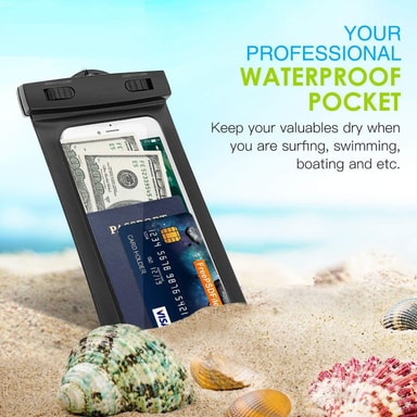 Mobilväskan har universalstorlek som passar i princip alla mobiltelefoner på marknaden. Kan hängas runt halsen med den medföljande remmen. Med ett vattentätt mobilfodral behöver du inte heller vara orolig för av stöld av din mobil på stranden när du ska i och bada, eftersom du bär med dig telefonen runt halsen. Fodralet skyddar dessutom även mot snö, sand och smuts vid andra outdoor-aktiviteter.