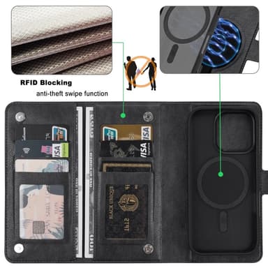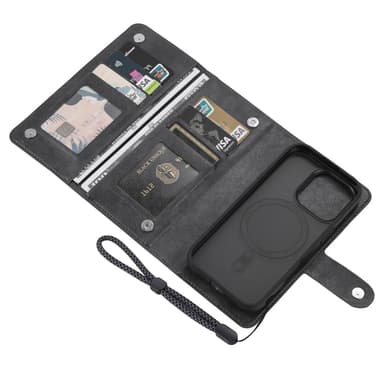Unna dig lyxen av en premium PU-läderplånbok och ett tåligt PC + TPU-skal, perfekt kombinerade för både stil och funktion. Den avtagbara designen ger dig friheten att använda plånboken separat eller tillsammans med telefonen, medan MagSafe-kompatibiliteten garanterar enkel och säker laddning. Känn dig trygg med RFID-blockeringstekniken som skyddar dina kort från obehörig scanning. Din telefon skyddas optimalt från fall och repor tack vare det robusta skalet. Njut av den mångsidiga 2-i-1-designen som ger dig det bästa av två världar.