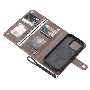 Unna dig lyxen av en premium PU-läderplånbok och ett tåligt PC + TPU-skal, perfekt kombinerade för både stil och funktion. Den avtagbara designen ger dig friheten att använda plånboken separat eller tillsammans med telefonen, medan MagSafe-kompatibiliteten garanterar enkel och säker laddning. Känn dig trygg med RFID-blockeringstekniken som skyddar dina kort från obehörig scanning. Din telefon skyddas optimalt från fall och repor tack vare det robusta skalet. Njut av den mångsidiga 2-i-1-designen som ger dig det bästa av två världar.