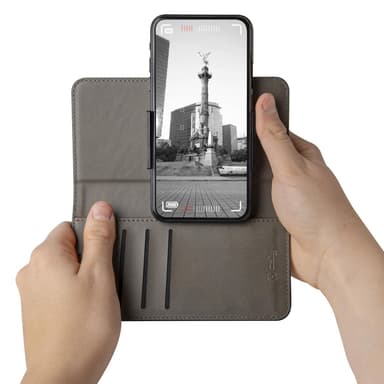 Det 360 ° roterande systemet gör att man kan ta bilder och filme med en enkel rörelse. Magnetstängningen håller telefonen säker i väskan.