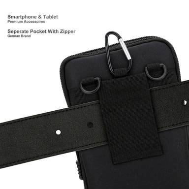 Bältesfickan för Xiaomi BLACK SHARK 2 har den perfekta storleken: 18,5 x 12,5 cm. Huvudfickan passar smartphones upp till 6,7 tum.