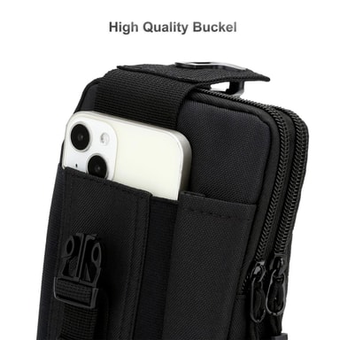 Molle-remmen på baksidan ger flexibla fästmöjligheter på ett bälte, en ryggsäck eller en väst. Den medföljande axelremmen erbjuder ytterligare ett bäralternativ. Denna mångsidighet gör väskan till en oumbärlig följeslagare.
