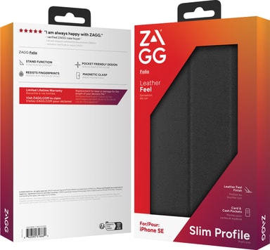 Tack vare Zagg iPhone SE plånboksfodral kan du hålla din telefon skyddad mot fall och stötar samtidigt som du har tre kortplatser för ID och bankkort. Dessutom erbjuder fodralet en stilren PU-läderlook och ett inbyggt stativ.Läs mer om produkten