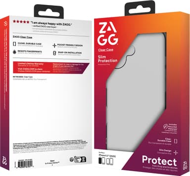 ZAGG Clear Case för iPhone 17 erbjuder tåligt, transparent skydd med flexibelt TPU-material, enkel påklickning, slimmad design, förstärkta kanter och kompatibilitet med trådlös laddning.Läs mer om produkten