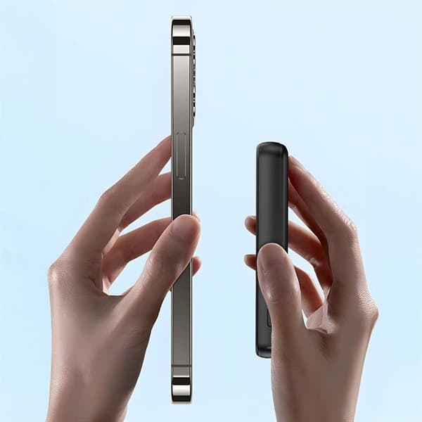 Kompakt, mångsidig och alltid redo – stället och den trådlösa laddningen gör powerbanken till ett självklart inslag i en smart vardag.