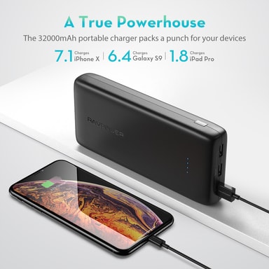 Letar du efter en kraftfull powerbank med kapacitet som räcker till att klara en hel veckas intensivt mobilanvändande? Frukta inte! RAVPower Ace Series 32.000 mAh ger dig upp till hela 11 uppladdningar av en smartphone i standardstorlek.